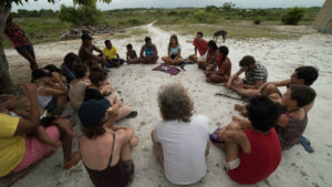 Through the fusion of fields such as social psychology, science fiction, art, science and technology, we seek to explore these themes and find creative solutions to generate community participation, adaptation and climate mitigation, as well as build new collective imaginaries about the near future.